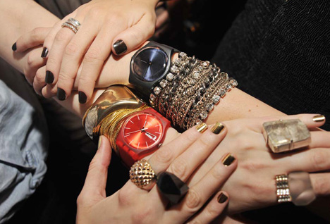 Misturar é tudo!!! Procure em todos os seus porta-jóias e faça seu mix! Vale tudo: pulseiras finas, grossas, braceletes, relógio, pulseirinhas de crochet coloridas....e o bom é que fica super exclusivo, cada uma tem seu mix! Fica lindo e faz um visual incrível até nas suas produções mais básicas...Use e abuse da criatividade! Abuse dos colares e anéis também. Quanto mais melhor!!! Pode-se misturar também as cores: ouro, prata, rose, negro, cobre.....tudo junto e misturado! Rsrsrsrs....
